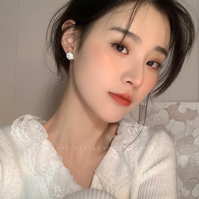 Aksesoris Fashion > Anting > Papaozhu Korea Mutiara Camellia Stud Anting Untuk Wanita Gadis Manis Pernikahan Bunga Putih Anting Fashion Telinga Perhiasan Hadiah