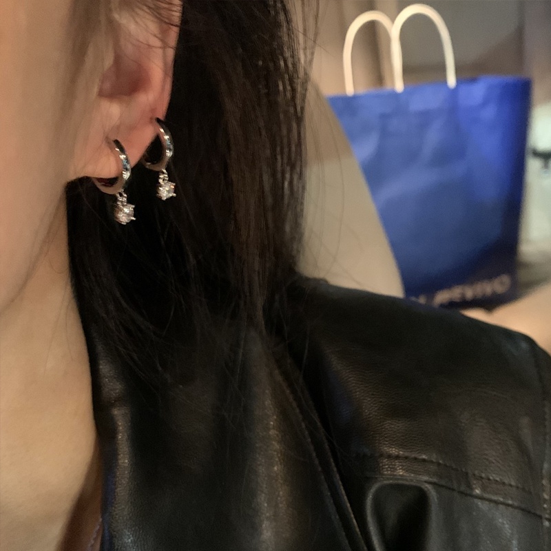 Detail Papaozhu Korea S925 Perak Bersinar Zirkon Anting Hoop Untuk Wanita Gadis Chic Berkilau Kristal Menjuntai Anting-Anting Temperamen Telinga Perhiasan Pakaian Sehari-Hari
