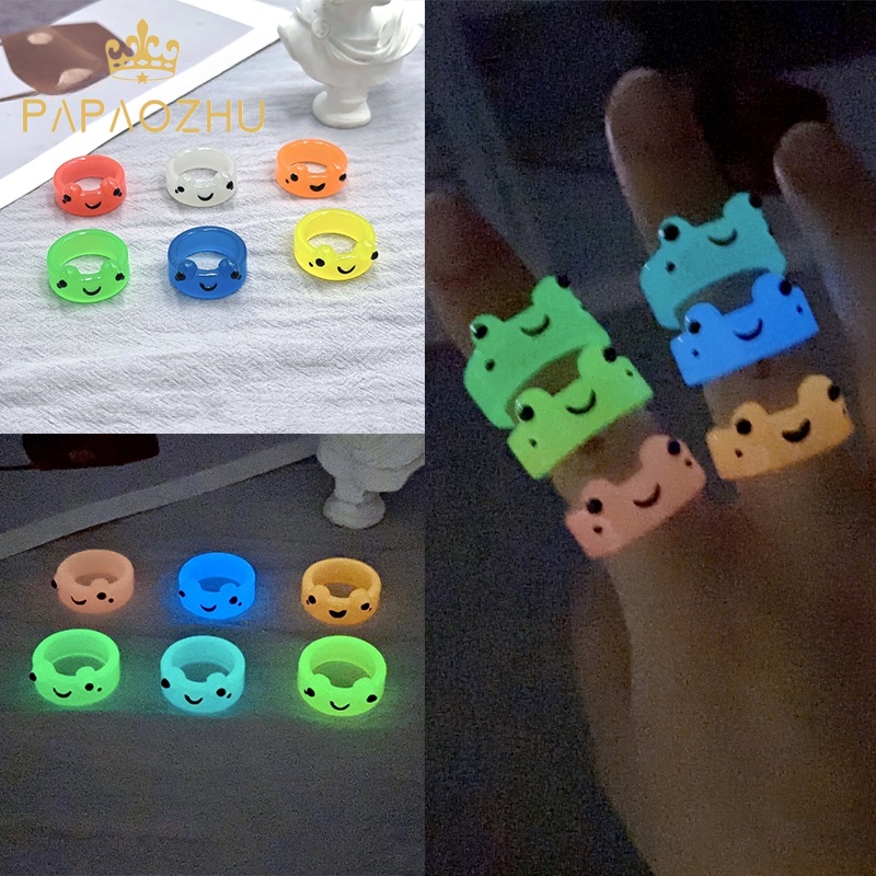 Papaozhu Trendi Resin Warna-Warni Bercahaya Katak Cincin Untuk Wanita Pria Anak Lucu Bercahaya Dalam Gelap Kartun Rings Kreatif Jari Perhiasan Hadiah Yang Sempurna