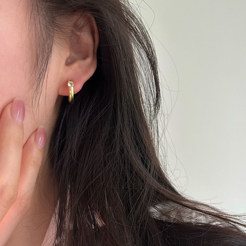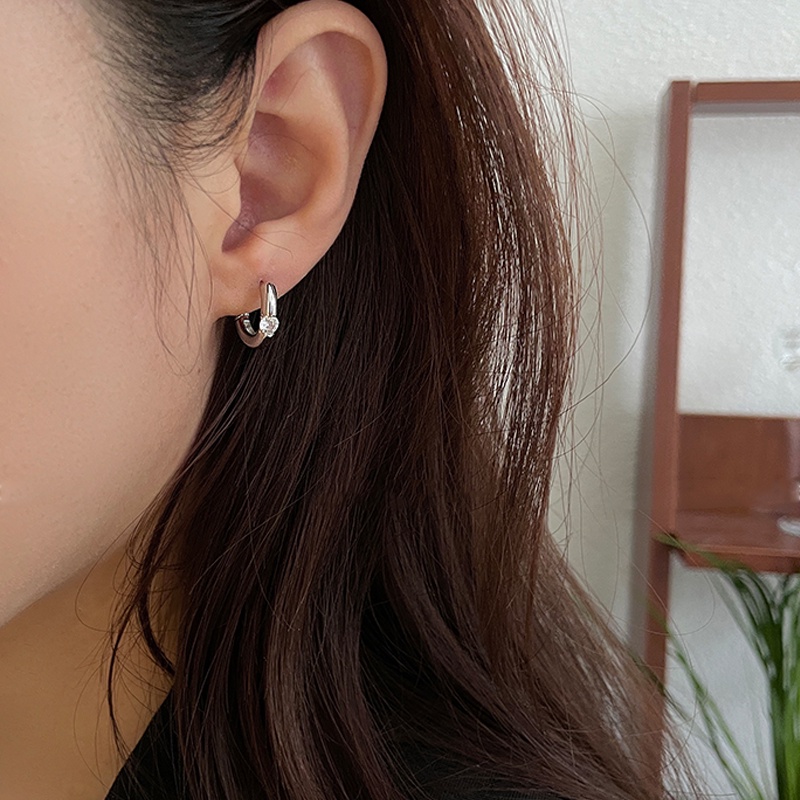 Detail Papaozhu Trendi S925 Perak Berkilauan Zirkon Anting Hoop Untuk Wanita Perempuan Gaya Bersinar Kristal Berongga Lingkaran Anting-Anting All-match Telinga Perhiasan Pakaian Sehari-Hari