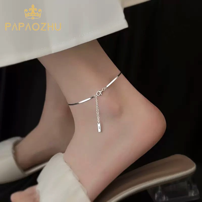 Papaozhu Trendi S925 Perak Persegi Panjang Liontin Liontin Gelang Kaki Untuk Wanita Perempuan Gaya Geometris Pergelangan Kaki Rantai Aksesoris Kaki Pakaian Sehari-Hari
