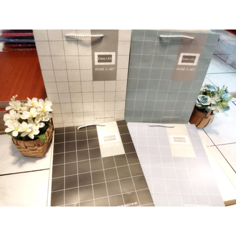 Paper Bag yang di lengkapi dengan -Tali cantik tebal -Bahan karton tebal, tidak mudah robek -Dasain kreatif & cantik sesuai dengan kebutuhan