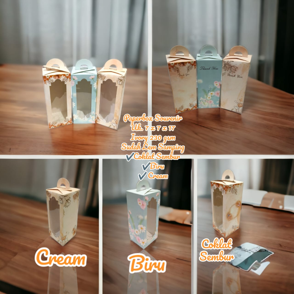 Souvenir & Party Supplies > Pembungkus Kado & Kemasan > Tas Kado > Paperbox Souvenir Uk. 7 x 7 x 17 Bahan Ivory 230 gsm ( Sudah Lem Samping )