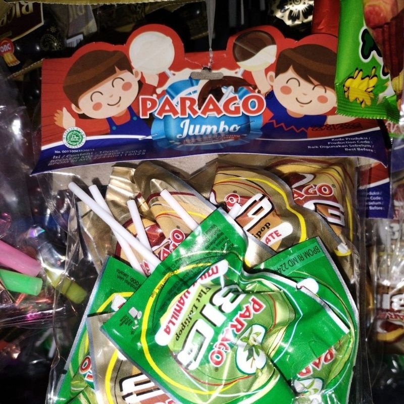 Detail parago jumbo rasa cokelat susu & susu vanila lollipop