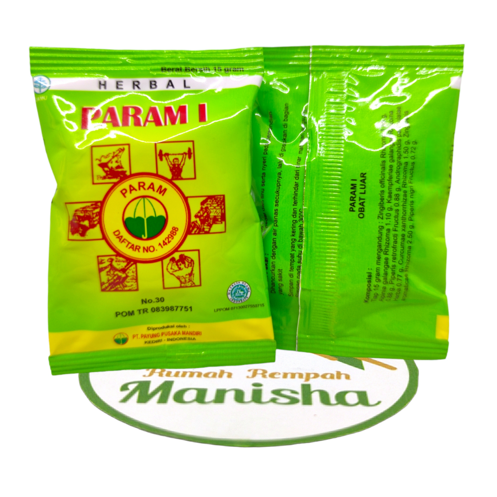 Param terbuat dari rempah-rempah alami, antara lain jahe, kencur, klabet dan sereh yang berkhasiat untuk: - Rileksasi otot-otot tubuh yang tegang - Membantu meredakan pegal-pegal - Memperlancar peredaran darah