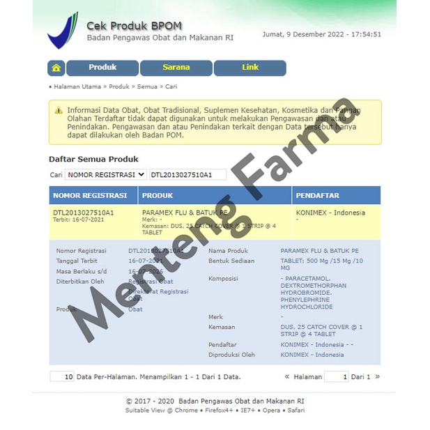 Penjelasan Singkat : - Obat Flu yang disertai batuk kering / tidak berdahak - Meredakan gejala flu seperti demam, sakit kepala, dan hidung tersumbat
