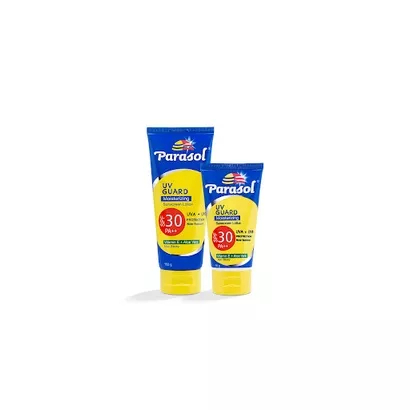 Parasol UV Guard Moisturizing Sunscreen Lotion merupakan krim yang diformulasi secara khusus untuk melindungi kulit terhadap efek yang merugikan dari sinar matahari terutama UVA dan UVB seperti kemerahan, rasa terbakar, kulit kering, kusam dan bintik hitam karena cahaya matahari. Produk ini mengandung Vitamin E yang dapat membantu merawat kelembaban kulit sekaligus memperlambat proses penuaan dini seperti kerutan halus akibat paparan cahaya matahari dan menjadikan kulit wajah tetap sehat dan tampak awet muda.