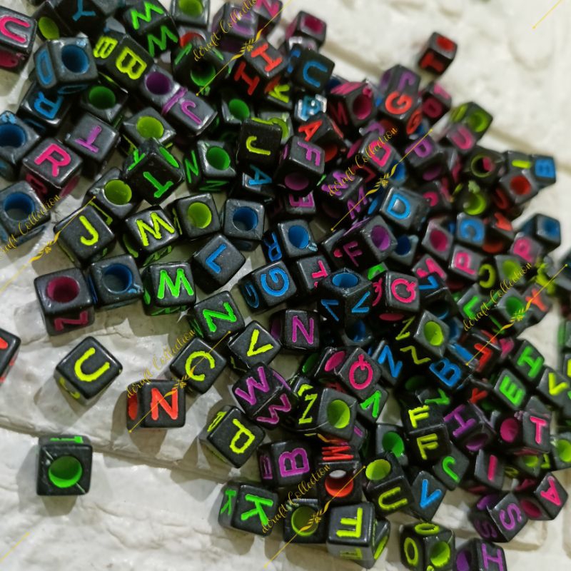 Hobi & Koleksi > Perlengkapan Menjahit > Parel Kubus Hitam Huruf Warna 25gram