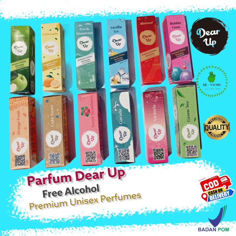 TERSEDIA DALAM 20 aroma Dear up BPOM 6ml Orange fres 18210601589 Bacarat 18210601578 Grentea 18210601579 Cute baby 18210601584 Vanilla ice 18210601575 victoria 18210601591 Aple 18210601594 Mountain 18210601593 Garuda 18210601590 Sweet strawbery 18210601576 Lemonade 18210601592 Buble gum 18210601577 biar mungil wangi nya bisa tahan lama 😁 non Akohol ya ka free burble warp
