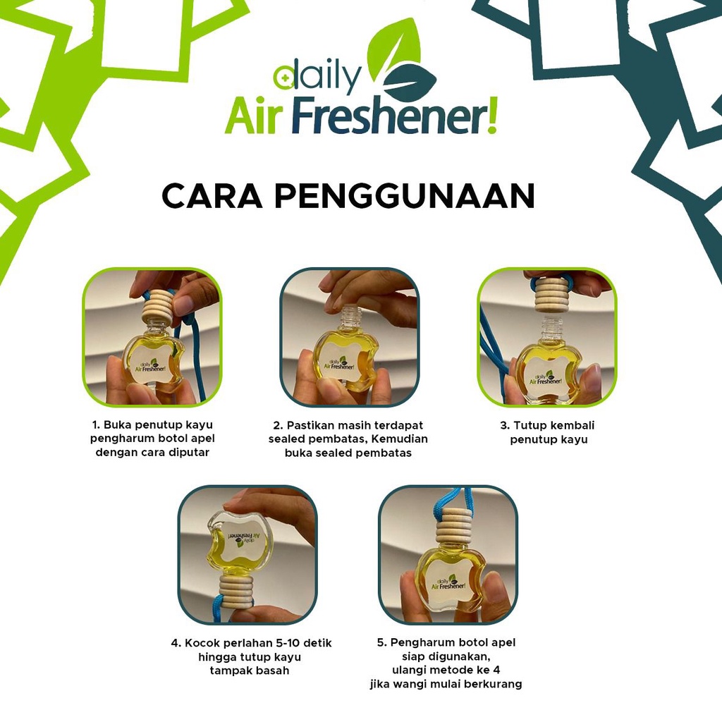 Daily Air Freshener merupakan pengharum mobil model gantung yang memiliki aroma lembut dan fresh yang akan menemani hari-harimu. Daily Air Freshener akan menambah kenyamanan anda saat berkendara dan dapat merelaksasikan tubuh, meningkatkan energi, menghilangkan rasa letih, stress dan lain-lain.