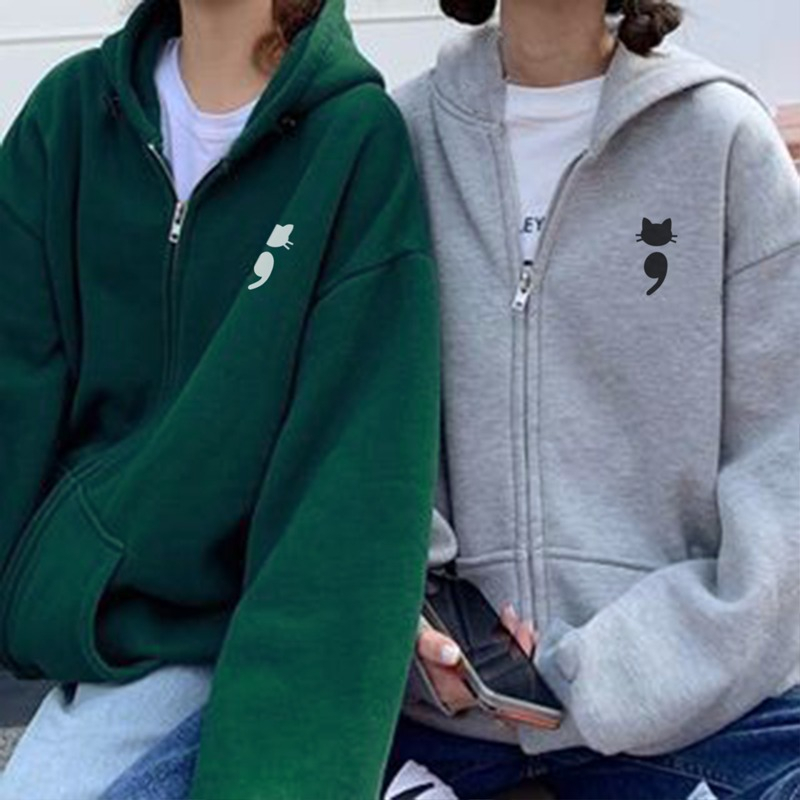 Detail Parisdivarious Jaket Sweater Hoodie Jemper Comma Cat Bahan Fleece Size S - XXL (Pria & Wanita)
