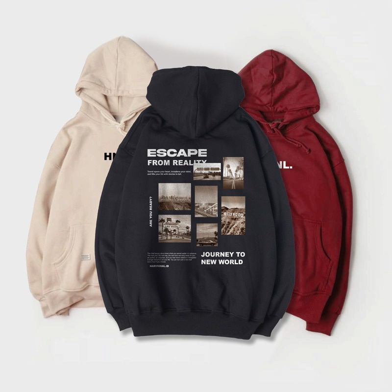 HOODIE ESCAPE BAHAN: FLEECE PREMIUM berstandar kualitas distro yang dijamin tebal, adem, lembut, tidak luntur, dan dijamin nyaman banget buat dipake MODEL: HOODIE SWEATER JEMPER unisex bisa dipakai cewe ataupun cowo SABLON:SABLON POLYFLEX DIGITAL (halus, tidak mudah pecah, awet dan tidak luntur)