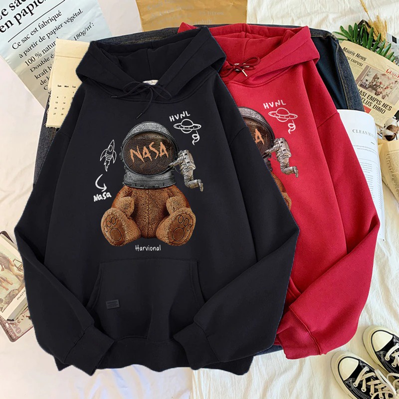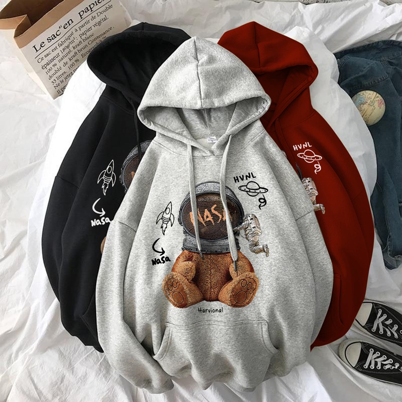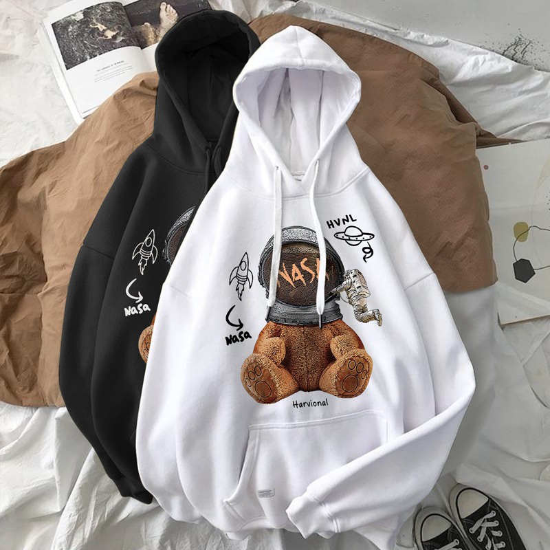 Detail Parisdivarious Sweater Hoodie Jemper Astronout Bear Bahan Fleece Size S - XXL (Pria & Wanita)