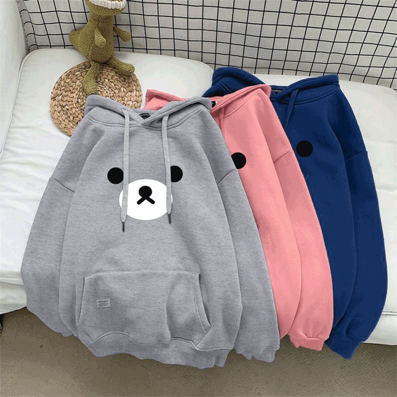 Detail Parisdivarious Sweater Hoodie Jemper Bear Line Mata Bahan Fleece Size S - XXL (Pria & Wanita)