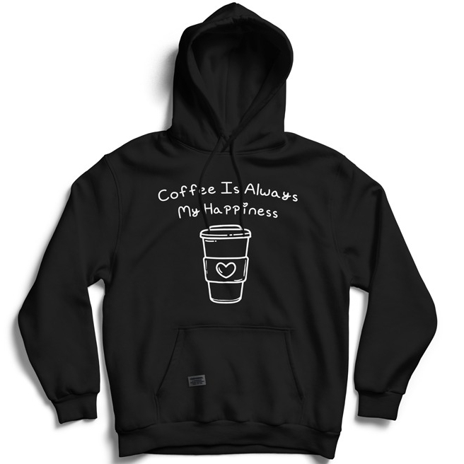 Hoodie coffee happiness BAHAN: FLEECE PREMIUM berstandar kualitas distro yang dijamin tebal, adem, lembut, tidak luntur, dan dijamin nyaman banget buat dipake MODEL: HOODIE SWEATER JEMPER unisex bisa dipakai cewe ataupun cowo SABLON:SABLON POLYFLEX DIGITAL (halus, tidak mudah pecah, awet dan tidak luntur)