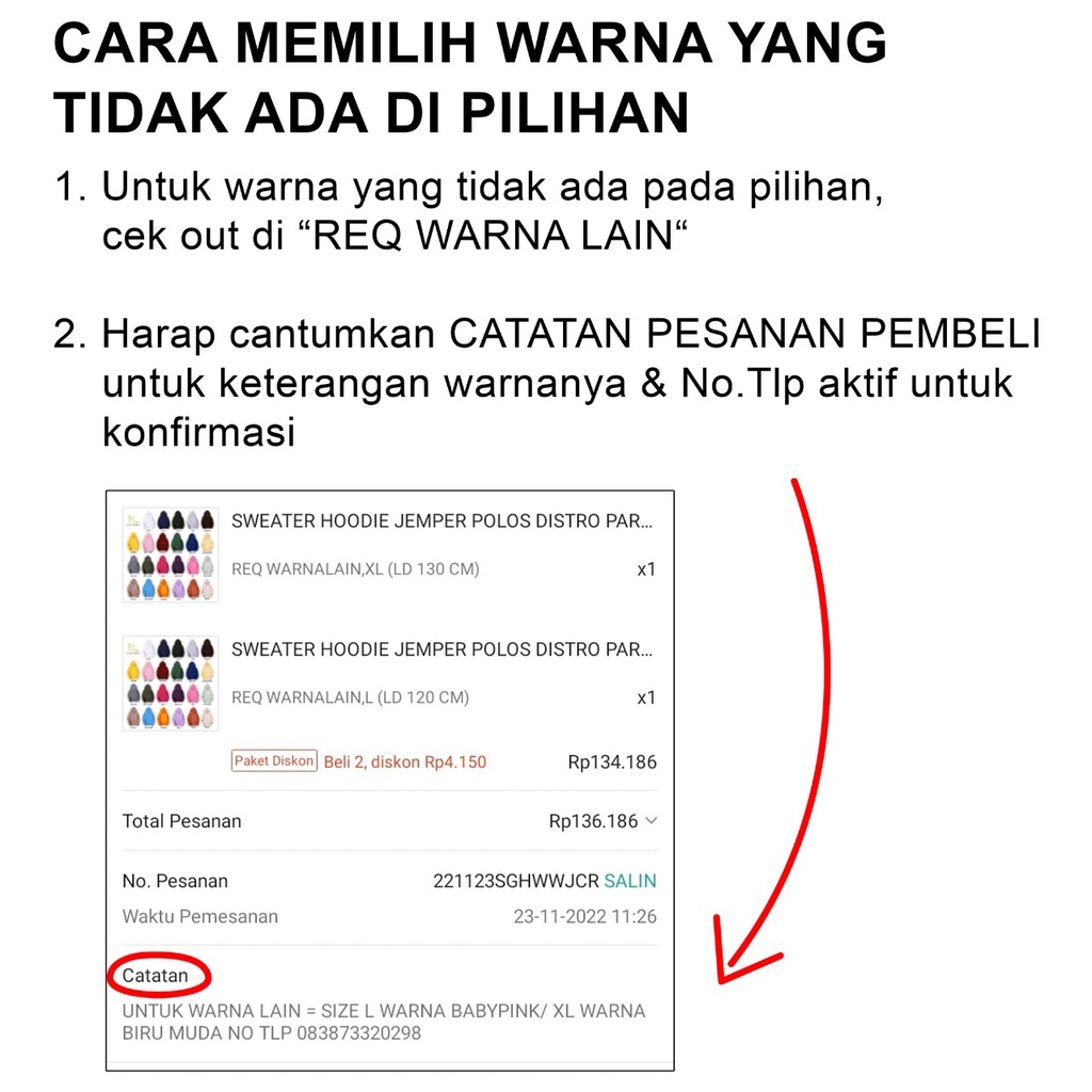 =================== UNTUK WARNA 17 KE WARNA 25 BISA DIPESAN LANGSUNG DI TAB NAMA WARNANYA 17.BEIGE 18.PUTIH 19.ABU TUA 20.KUNING 21.ABUMUDA 22.MOCCA 23.HITAM 24.NAVY 25.MAROON