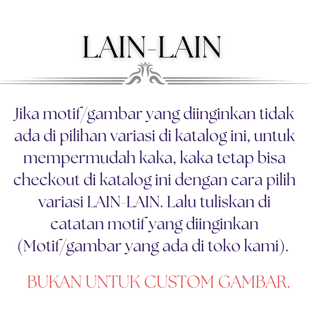 Dear customer selamat datang di toko Kiiyoomii Sebelum membeli, silahkan membaca deskripsi terlebih dahulu 💕 . ✓ JIKA MOTIF/GAMBAR YANG DIINGINKAN TIDAK ADA DI PILIHAN VARIASI DIKATALOG INI, UNTUK MEMPERMUDAH KAKA, KAKA TETAP BISA CEKOUT DIKATALOG INI YA KAK DENGAN CARA PILIH VARIASI LAIN-LAIN ( KECUALI “PILIHAN RANDOM” JIKA PILIH RANDOM AKAN DIKIRIM RANDOM SESUAI STOCK YANG ADA) LALU TULISKAN PESAN DICATATATAN SEBELUM CEKOUT YANG BERISIKAN MOTIF/GAMBAR YANG KAKAK INGIN KAN (MOTIF/GAMBAR TENTUNYA YANG TERSEDIA DITOKO KAMI YA KAK, BUKAN DESIGN GAMBAR CUSTOM DARI KAKAK) DAN KONFIRMASI DENGAN CHAT KAMI KIRIM SCREENSHOOT MOTIF YG DIPILIH VIA CHAT MELALUI SHOPEE 😊 . Di katalog ini, kami menggunakan bahan DRILL. Kualitas produk kami? Silahkan cek di testimonial ya dengan harga murah Kaka akan dapatkan produk dengan Spec sbb: