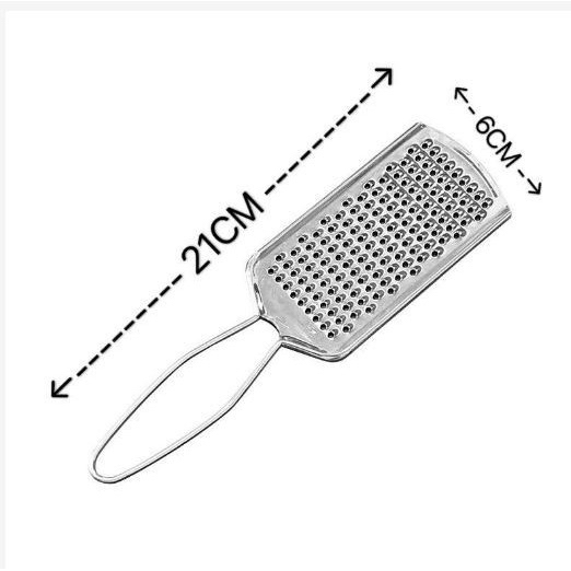 Spesifikasi – Bahan : Stainless Steel – Lebar : 5.5Cm – Panjang Parutan : 10Cm – Panjang Sampai Gagang : 21Cm
