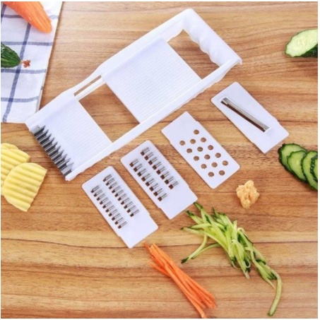 Fitur -Multi-fungsi, Pisau yang Dapat Dipertukarkan, Kokoh, Tahan Karat, Mudah Dibersihkan, Aman - Alat pengiris sayuran ini memiliki konstruksi yang sederhana dan dapat langsung dibersihkan dengan air dan kuas, Dengan mata pisau yang sangat tajam, mudah digunakan dan memotong dengan cepat. Ini adalah penghemat waktu nyata untuk persiapan makanan . -Produk ini cocok untuk mengiris dan memarut sayuran, buah-buahan, keju, dan sebagainya.