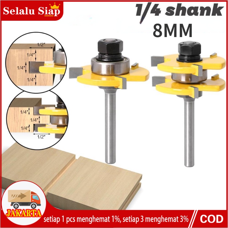 Video perkenalan produk {pasangan}1/4 mata router profil sambungan kayu panel pintu slot set Tongue & Groove As 6mm Mata profil kayu 8mm. Sumber: Shopee.