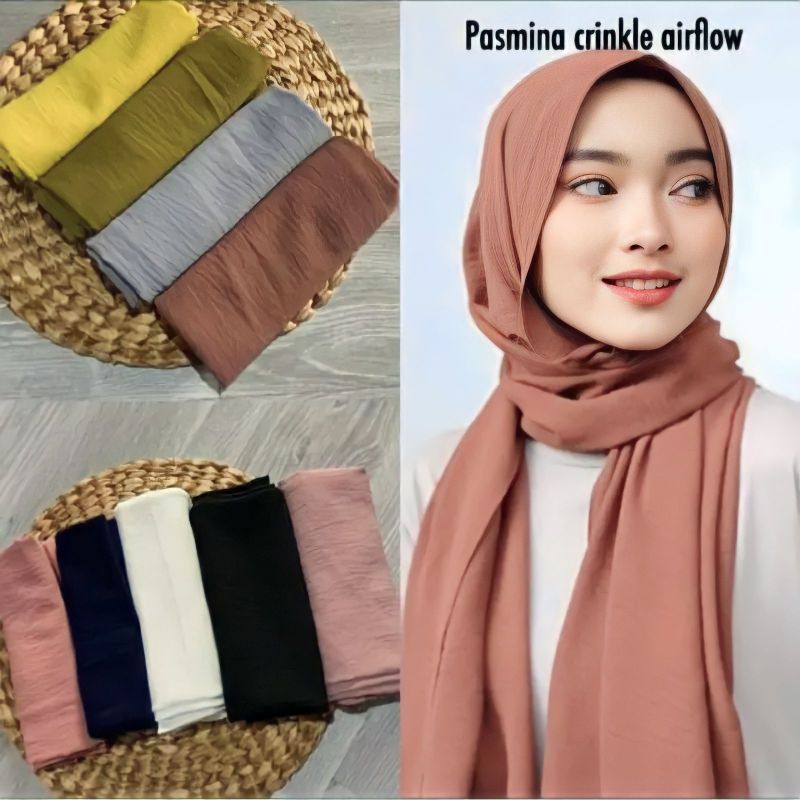 Pashmina terbaru bahan crinkle Airflow yg lembut dan tidak perlu di setrika lagi. dengan karakteristik strech 4 sisi. ironles bisa tanpa di setrika lagi. tebal dan tidak menerawang, nyaman banget di pakainya. tergolong kain mahal di kelasnya