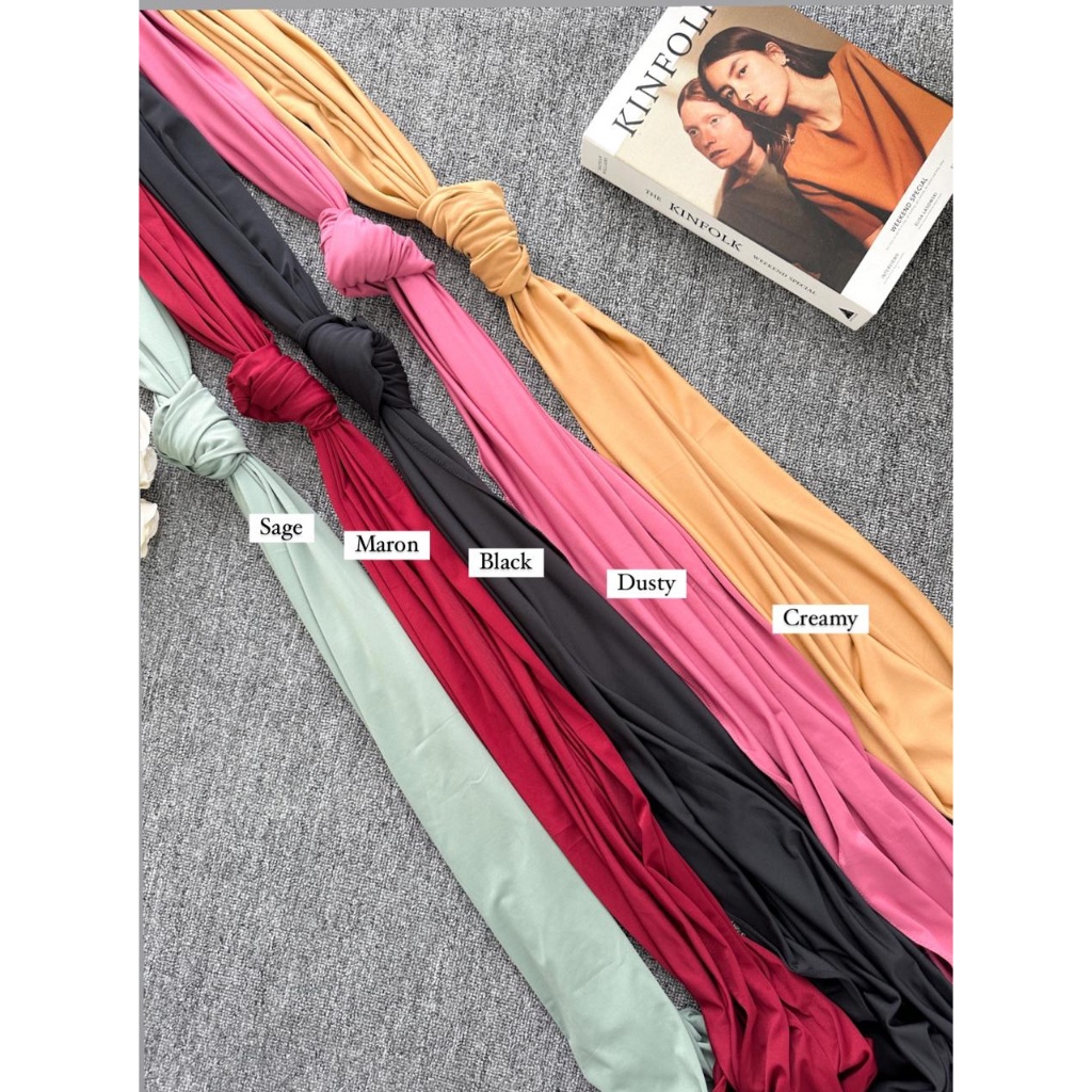 Pashmina Kaos Jersey Premium Bahan: Jersey Premium Tebal Elastis & tidak nerawang Ukuran: -/+ 175 x 70 cm Jahitan: Jahit tepi