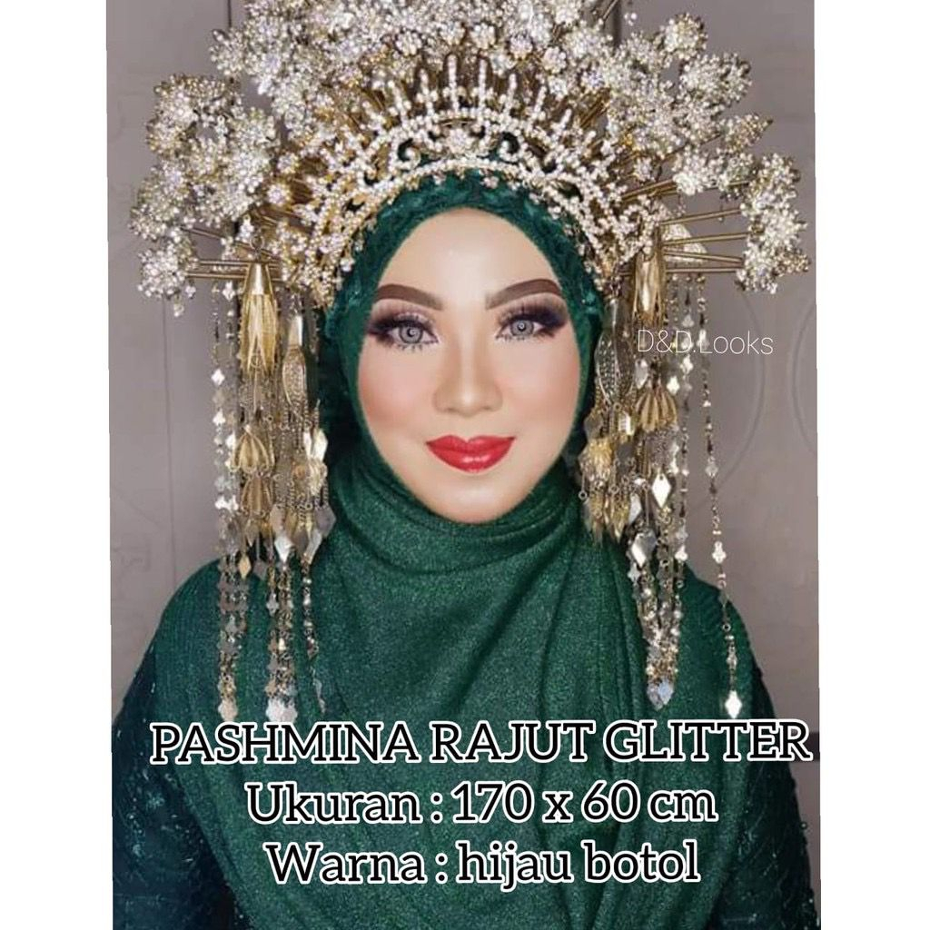 Ada yang mau bikin riasan pengantin jadi lebih terlihat lebih mewah dan elegan hanya dengan budget yg pas di kantong? Tepat sekali! Dengan menambah paduan pashmina rajut glitter dapat menambah kesan mewah di riasan pengantin anda ataupun riasan pesta lainnya, dengan komposisi bahan glitter grade A menjadikannya nampak bling-bling yg super elegan ketika terkena cahaya.
