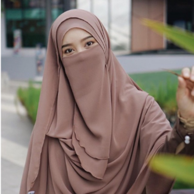 Pashmina syari set dengan cadar tali 2 layer bahan Cerutty BabyDoll | pashmina dan cadar 2 susun jahit kelim rapi