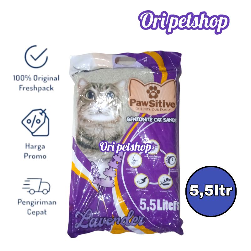 Detail Pasir Kucing Pawsitive 5,5ltr Pasir Wangi Gumpal Bentonite Cat Sands - Lavender