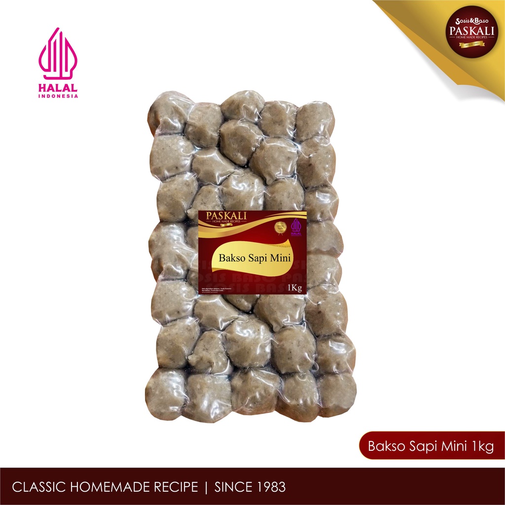 PASKALI Bakso Sapi Mini 1000gr selalu menjadi pilihan warga bandung. Nikmati kepraktisan dan rasa daging impor berkualitas dengan berbagi kelezatan PASKALI bersama orang tersayang dan terdekat. Spesifikasi produk : Warna : Abu-Abu Muda Berat Bersih : 1000 Gram Isi : 200 Pcs Instruksi Penyimpanan : Suhu ruang 15o C – 24oC : 3 Hari Suhu Chill 4oC : 30 hari Suhu Beku 0o - -20oC : 12 bulan Cara Penyajian : Rebus pada air mendidih 100 C hingga sedikit mengembang lalu sajikan, atau bisa sebagai campuran masakan lain. Jam Operasional Toko : 08.00 – 16.00 (Senin-Sabtu) Layanan Pengiriman : -Instan/SameDay -Reguler/Express