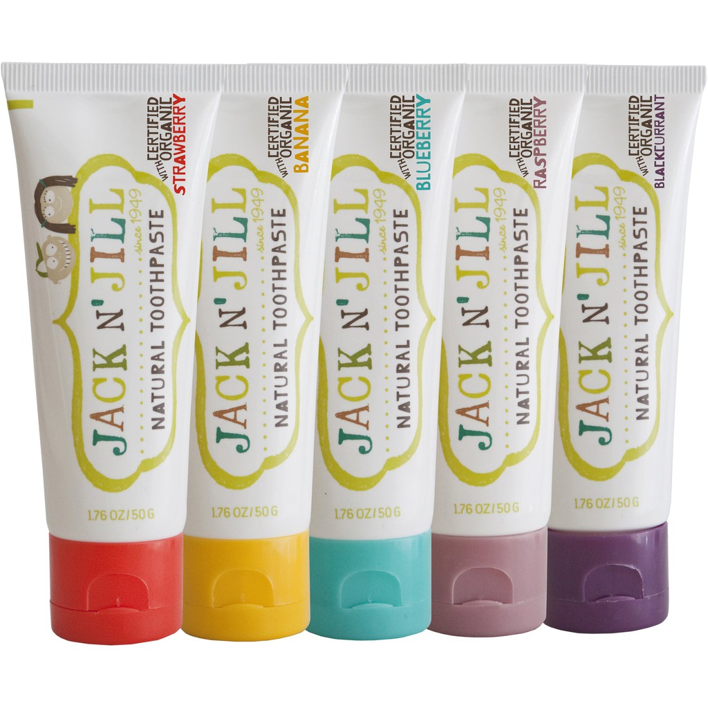 Tidak mengandung pemanis buatan seperti sakarin, sorbitol, dan sucralose. Hampir semua pasta gigi anak-anak yang beredar mengandung salah satu dari pemanis buatan tersebut. Sakarin 300x lebih manis daripada gula dan sucralose bahkan 600x lebih manis daripada gula. Pasta gigi Jack N’ Jill menggunakan buah organik bersertifikasi sebagai gantinya. Buah tersebut adalah Banana, Blackcurrant, Blueberry, Rasberri , dan Strawberry.