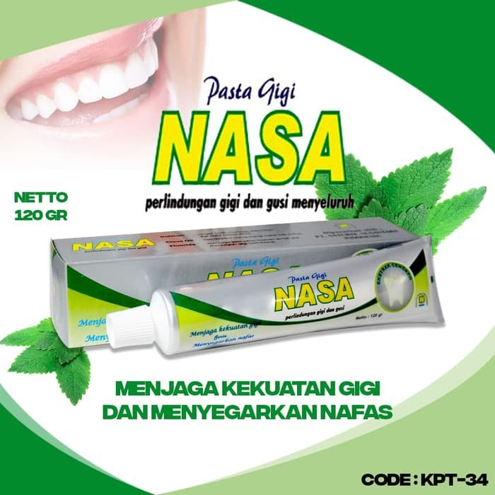 PASTA GIGI NASA mengandung minyak aroma alami yang memiliki rasa dan bau yang segar,menjadikan mulut menjadi harum dan menghilangkan bau tak sedap,serta mengandung anti decay agent (Zat anti pembusukan ),yang menurunkan jumlah bakteri di mulut dan mencegah proses pembusukan. 24 JAM MEMBERIKAN PERLINDUNGAN TERHADAP GIGI DAN GUSI SECARA MENYELURUH.