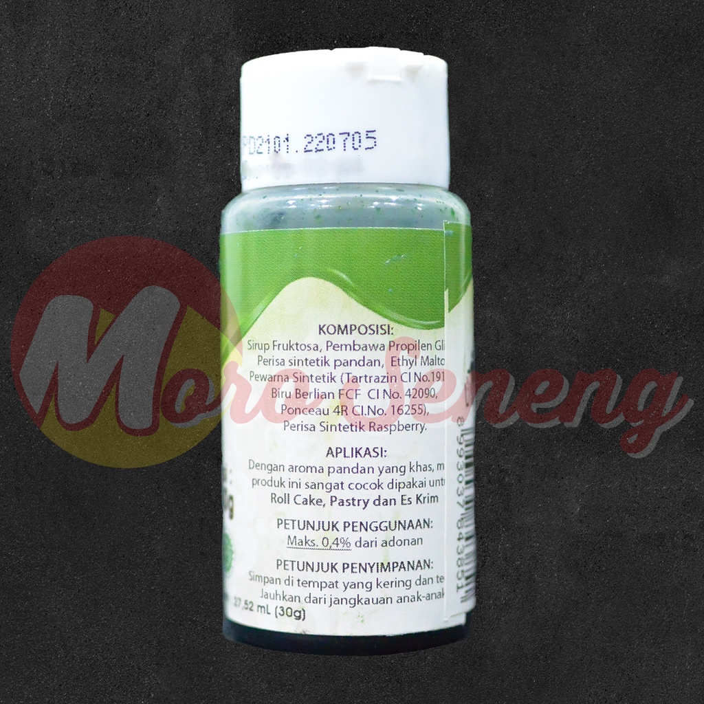 Deskripsi: - Merk: Hamer (Produksi Hakiki Donarta) - Expired: 5/8/2024 - Jenis: Pasta Perisa dan Pewarna Pandan - Aplikasi: Campuran roti, bolu, pudding, butter cream/krim kocok, dll maupun untuk campuran minuman untuk memberi aroma, warna, dan rasa pandan yang menarik dan alami. - Ukuran: 30 gr