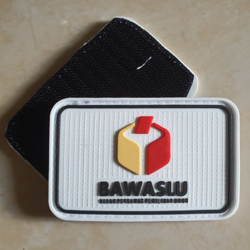 Aksesoris Fashion > Aksesoris Tambahan > Bordir > patch rubber logo bawaslu kotak dasar putih / badan pengawas pemilihan umum / pemilu / tempelan emblem karet velcro