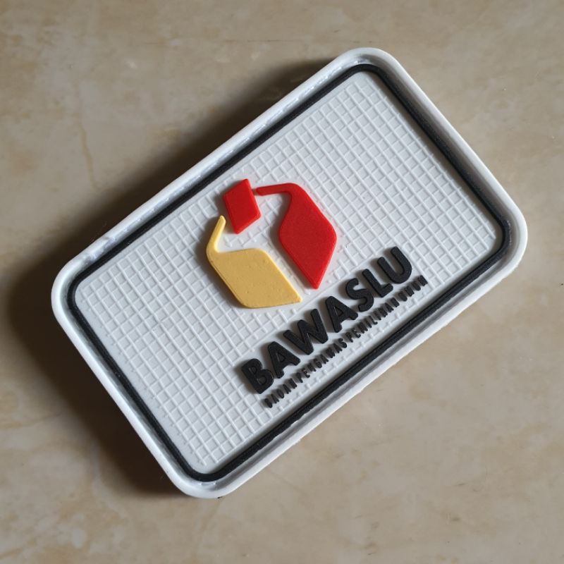 Detail patch rubber logo bawaslu kotak dasar putih / badan pengawas pemilihan umum / pemilu / tempelan emblem karet velcro