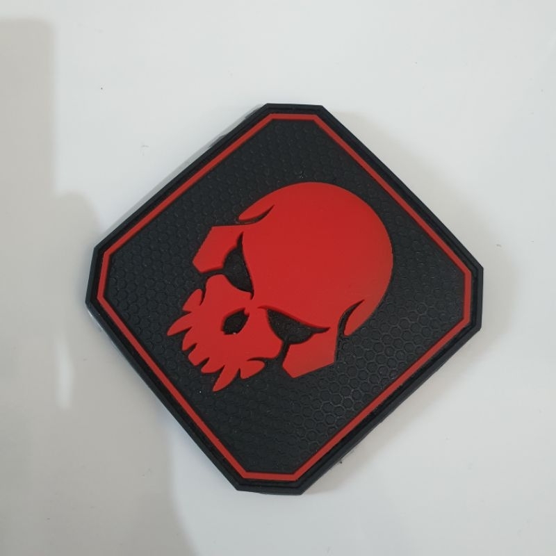 Detail patch rubber logo tengkorak emerson merah / tempelan emblem karet velcro