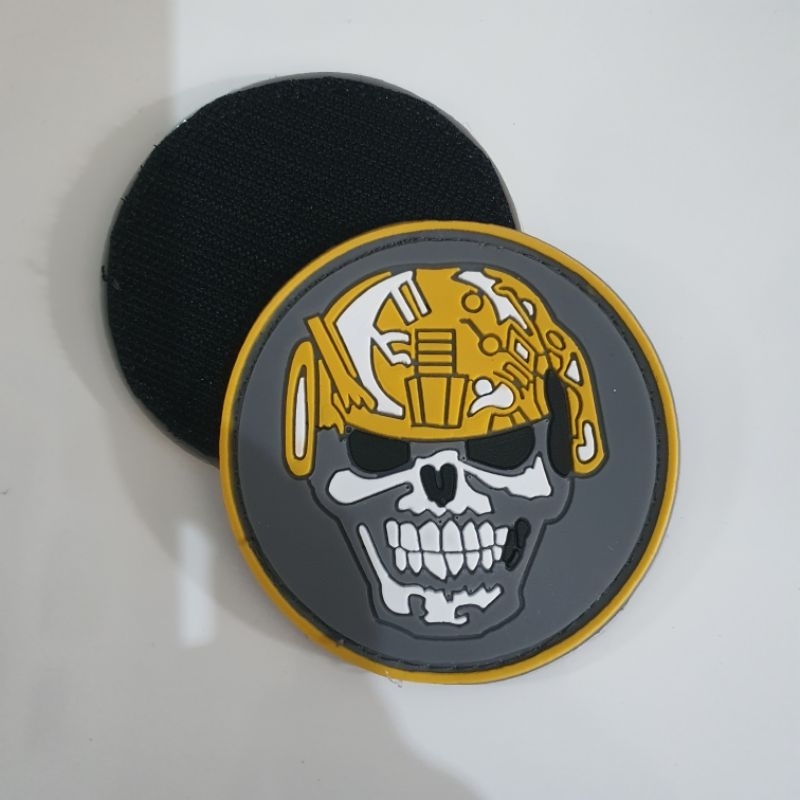 Detail patch rubber logo tengkorak helmet tactical / tempelan emblem karet velcro
