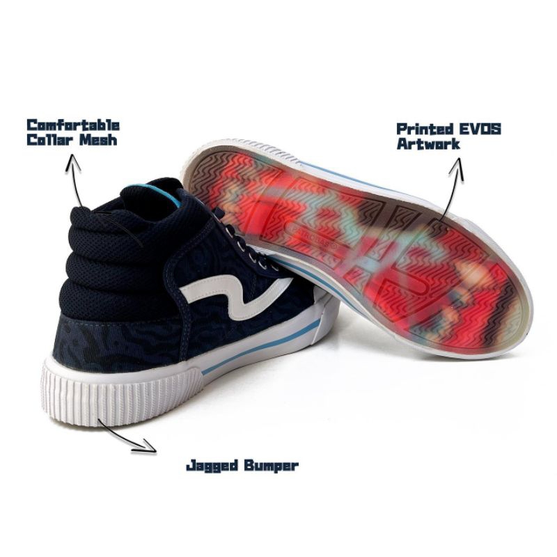 MATERIAL β’ Premium Canvas with White Tiger Stripe Pattern β’ Multi-layer EVOS Tongue Logo β’ Exclusive Printed Insole with EVOS Artwork β’ Translucent Outsole Printed with EVOS Artwork β’ Custom Made Front Bumper shape with 100% Rubber β’ EVOS embroidery with alphabetical and kanji letter β’ 100% Rubber Foxing and Outsole