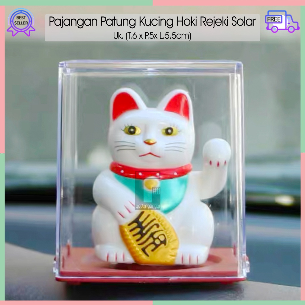 Patung Pajangan Dekorasi Hiasan Kucing Hoki Rejeki Hook Maneki Neko Maneko Neki Keberuntungan Cina China Jepang Japan Lucky Cat Solar Cahaya Sinar Non Baterai Batery Batrai Ruangan Meja Toko Kasir Dashboard Mobil Size Kecil Small Sedang Medium Besar XL
