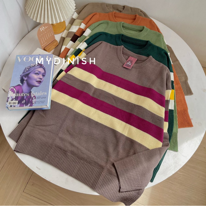 Detail Paula Sweater Rajut Wanita Motif Garis Korean Style