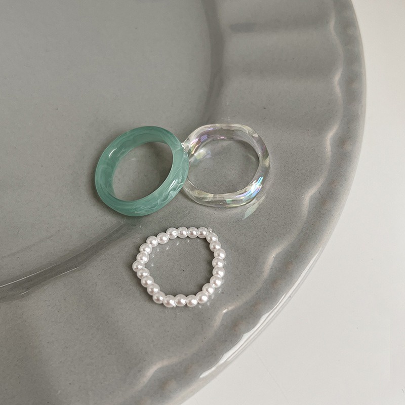 Aksesoris Fashion > Cincin > Pauline 3pcs / Set Cincin Mutiara Resin Warna-Warni Untuk Aksesoris Perhiasan Wanita