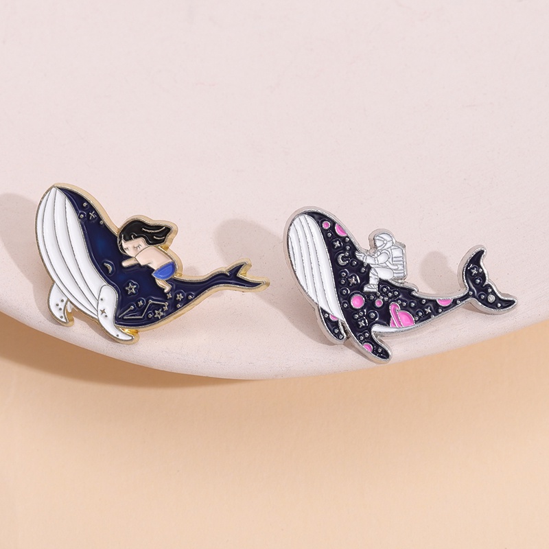 Detail Paus Lucu Enamel Pin Kartun Laut Astronot Whale Bros Lencana Kerah Pin Keren Ruang Perhiasan Hadiah Untuk Teman Anak-Anak