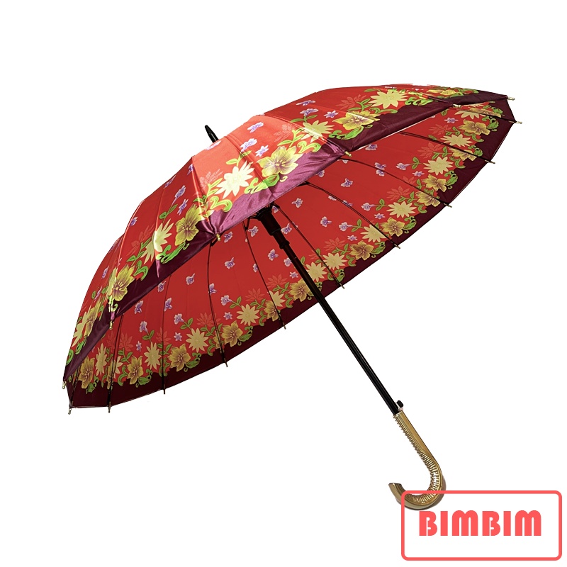 Payung 16 Jari Bahan Saten Motif Kembang Import Quality Rangka : 16 Jari Bahan kain : Saten Jari Jari : 16 Diameter payung saat dibuka : +- 105 cm Panjang saat dilipat : +- 78 cm Handle : Gagang Emas
