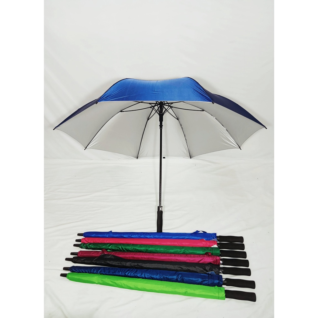 Inilah salah satu produk andalan kami : Payung GOLF Motif Polos Lapisan Silver berbahan Pongee yang sangat lembut dan Kualitas yang patut di acungi jempol . 8 Jari jari fiber