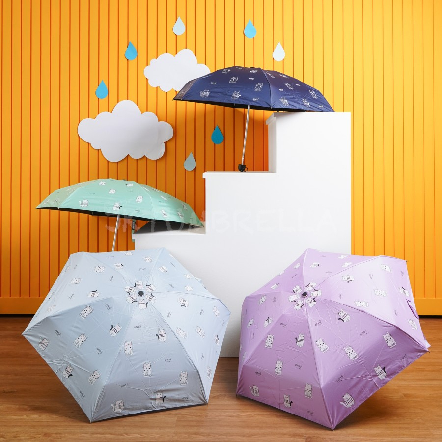 Payung lipat 5 kecil mini dompet / motif kucing / antiUV / GRC - 363 Payug lipat 5 motif kucing lucu full print. Payung tebal, ringan, berukuran kecil sehingga mudah untuk dibawa-bawa.