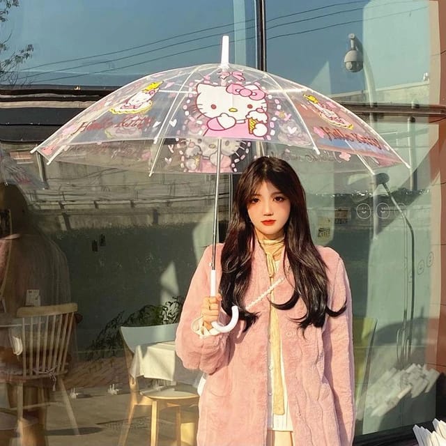Payung transparat ini sangat lucu dengan model kartun cocok untuk musim hujan