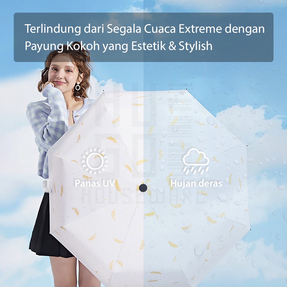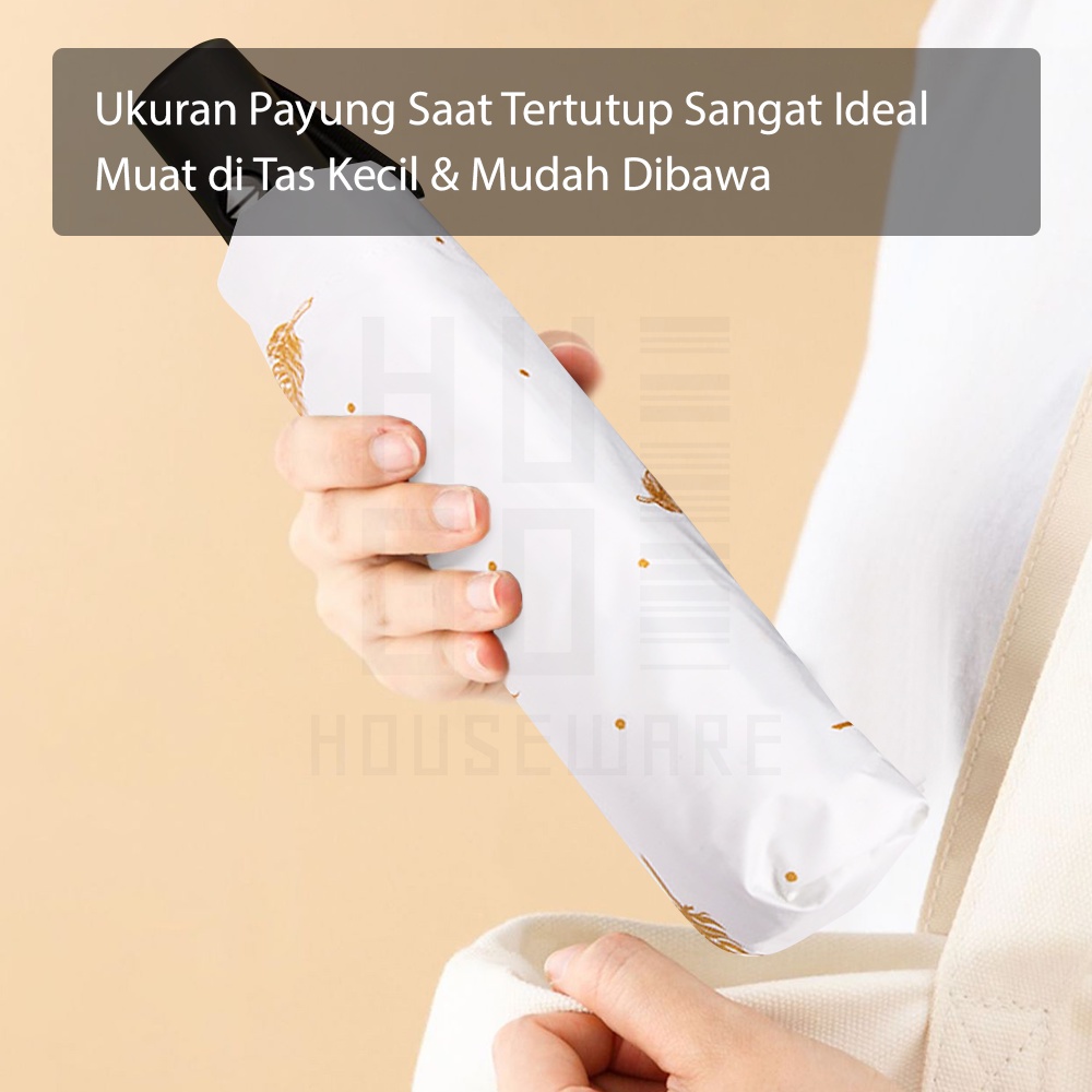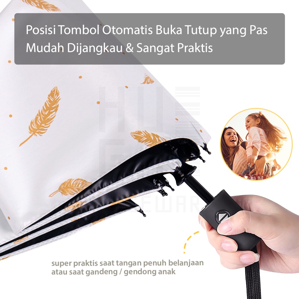Detail Payung Lipat Otomatis Buka Tutup Anti UV Protection Motif Feather Premium Quality HUGO