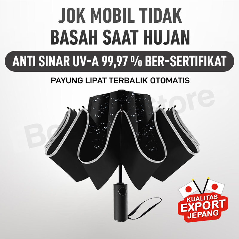 Payung Lipat Terbalik Buka Tutup Otomatis Anti UV 99.97 % Ber-Sertifikat Bossco Store ( 23" Ukuran Besar Kualitas Export Jepang)