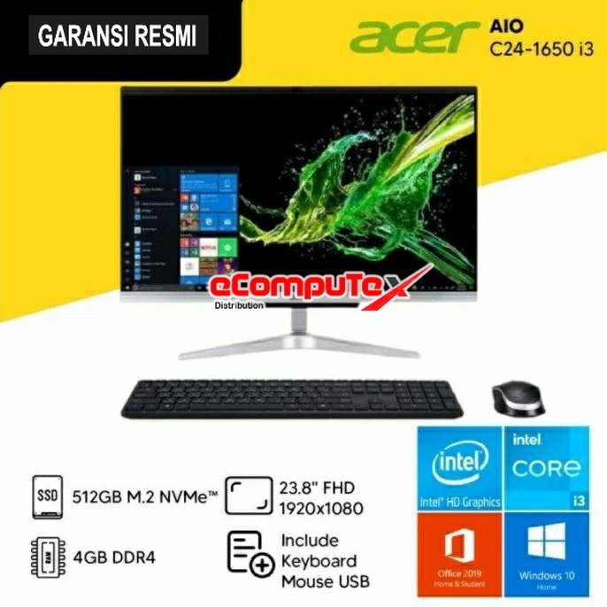 Detail PC AIO ACER ASPIRE C24-1650 INTEL CORE GEN i3-1115G4 / INTEL UHD GRAPHICS / RAM 4G 1TB HDD NODVD WIN11+OHS 23.8" GARANSI RESMI