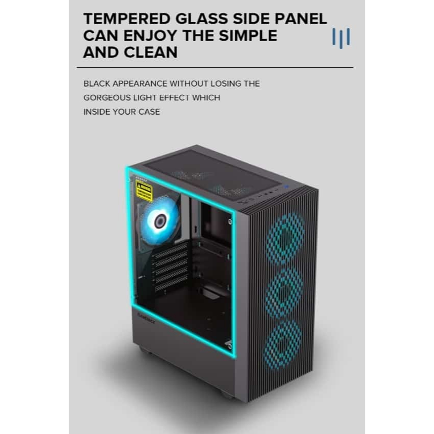 PC Case Gaming Gamemax EDGE 6650 Mini tower M-ATX Free 1Fan RGB GameMax EDGE Mini Tower Compact Computer Case Micro ATX Mini ITX Black Gaming PC Case Rear 120mm Fixed RGB color Fan Pre-Installed & Front Plastic mesh airflow Panel. Upgrade Friendly: The tempered glass side panel provides a convenient and transparent view of your battle station. Minimalist Style, Maximum Power: The lines on the front panel offers a stylish and modern design while providing maximum airflow to keep your system cool and clean. The top I/O panel allows for easy access to your devices. Built to Meet Builders' Demands: With ample room to accommodate graphics cards up to 325mm in length and CPU coolers up to 155mm tall, this case can handle all your high-performance components. Superior Cooling Performance: The case supports up to 360mm radiators in the front and 240 radiators on top and up to 6 case cooling fans, delivering optimal cooling performance for even the most demanding applications. Sufficient Internal Space: Simple Storage Access: Install up to 3x 3.5in HDDs and 5x 2.5in SSDs with case size 280*200*450mm, Expansion 5xSlots unique feature, Ready for RTX40 series GPU cards!